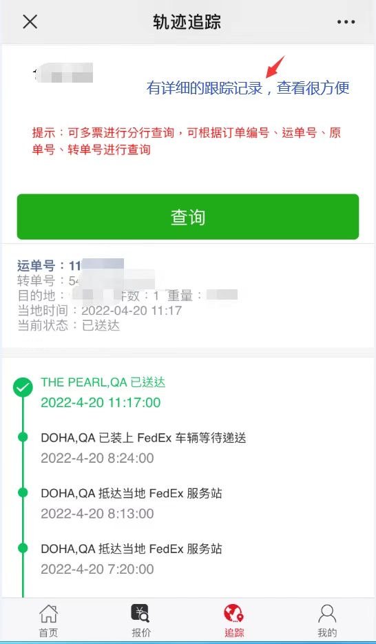 第四步,可以查看详细的跟踪记录和转单号,非常方便。